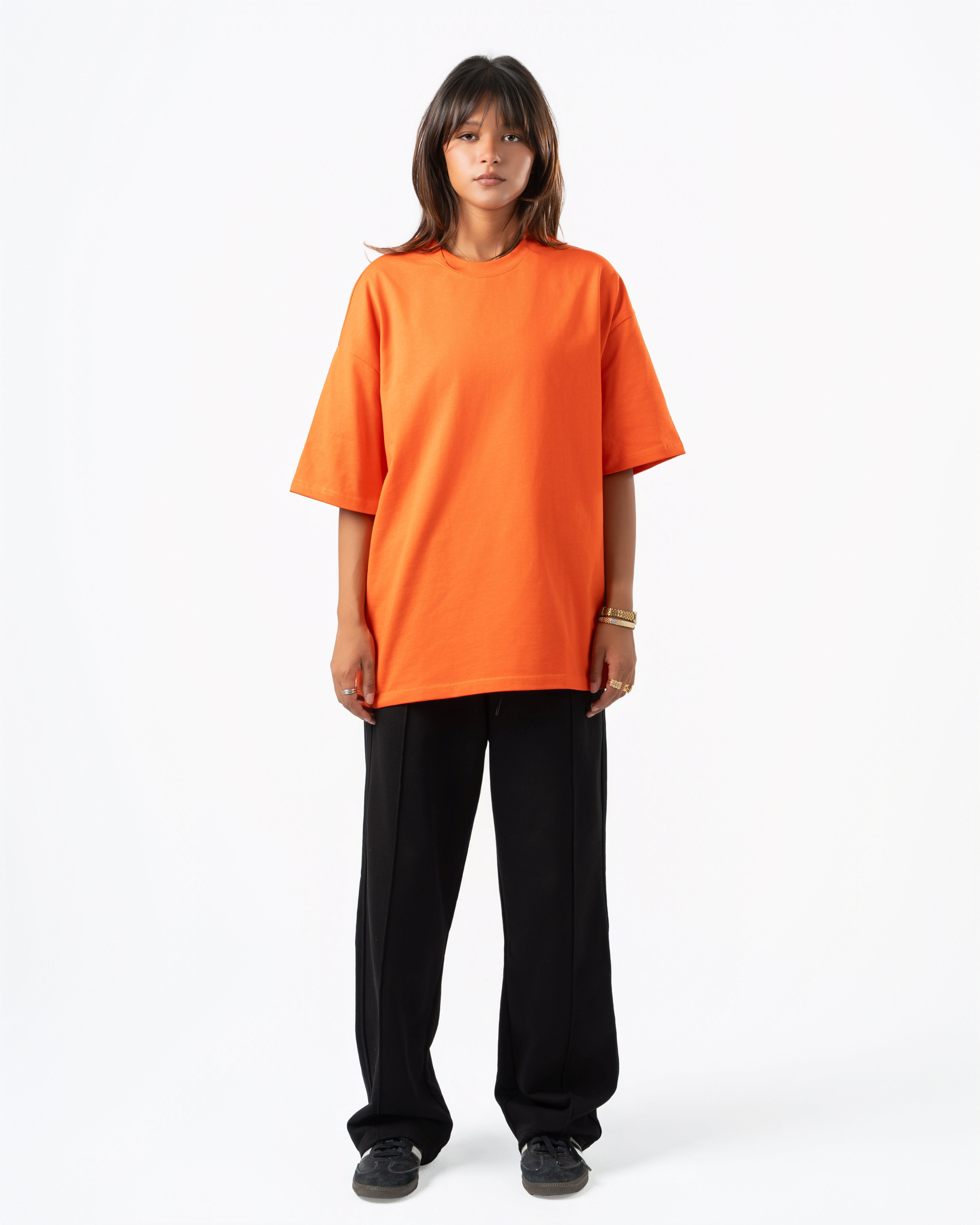Heavyweight Basic Oversized Bright Orange T-Shirt